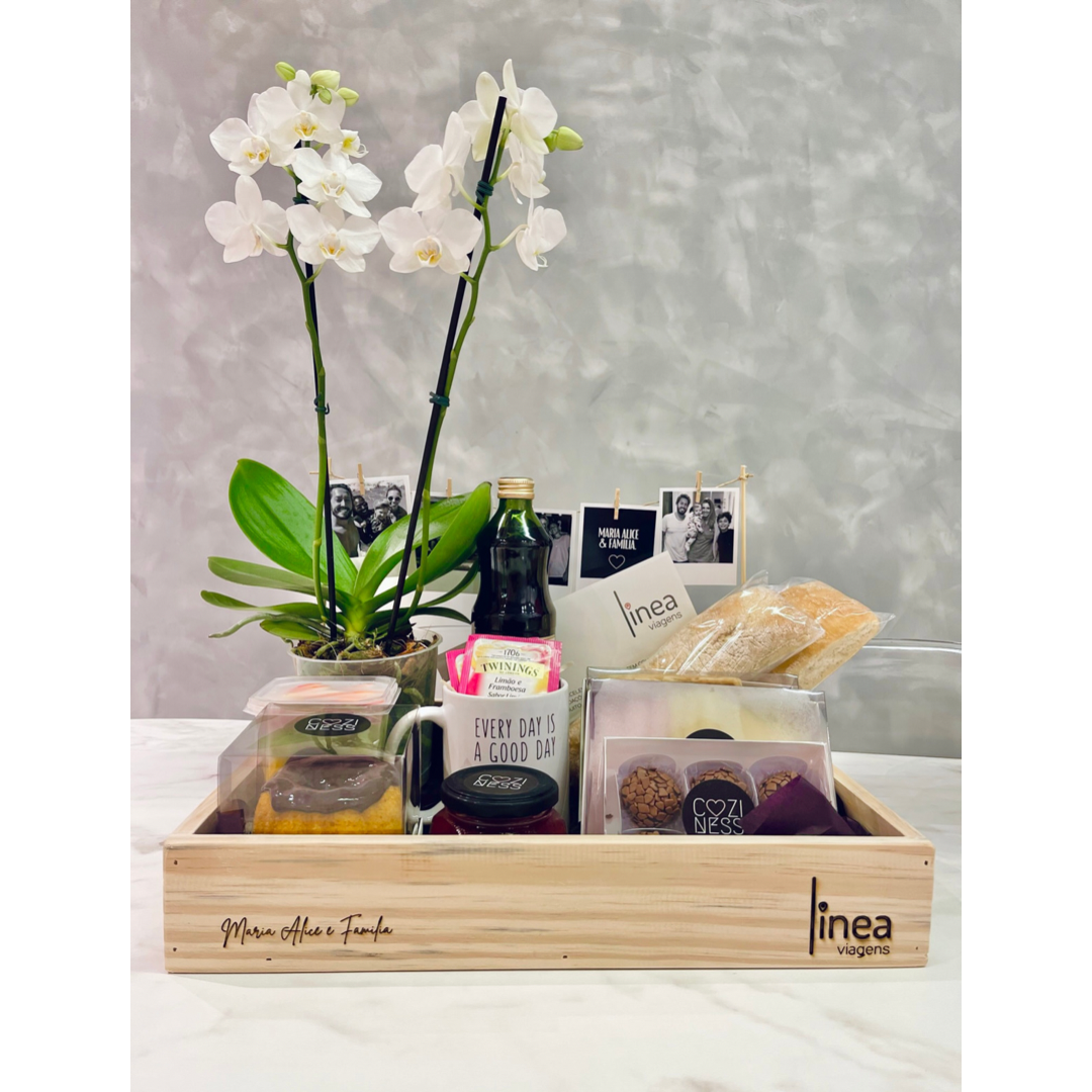 Desperte sensações especiais com a Cesta Café com Amor, uma manifestação tangível de carinho e cuidado em cada detalhe. Elaborada meticulosamente com produtos artesanais e ingredientes de excelência, esta cesta oferece: